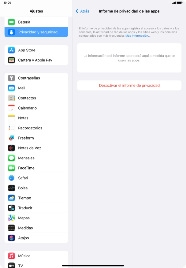 Utiliza la función de registro de la actividad de las apps en la Apple iPad (10th Generation) iPadOS 16.3
