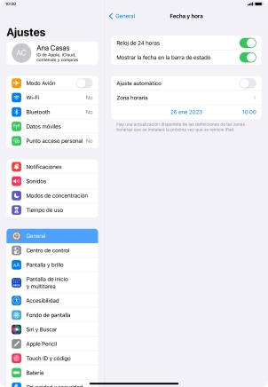 Ajusta la fecha y la hora en la Apple iPad (10th Generation) iPadOS 16.3
