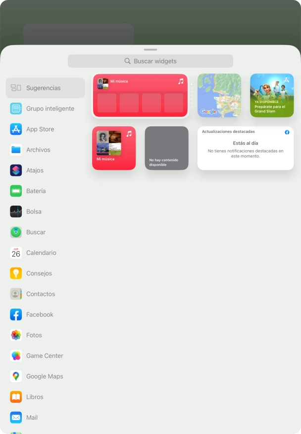 Si utilizas un grupo de widgets: Desliza el dedo hacia arriba o hacia abajo sobre el grupo para seleccionar el widget deseado.