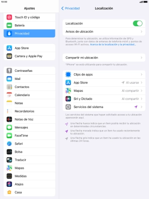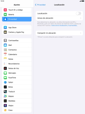 Pulsa el indicador junto a "Localización" para activar o desactivar la función.