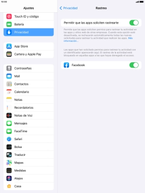 Pulsa el indicador junto a "Permitir que las apps soliciten rastrearte" para activar o desactivar la función.