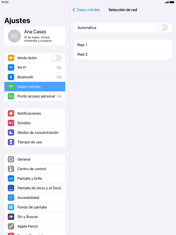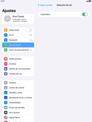 Pulsa el indicador junto a "Automática" para activar o desactivar la selección automática de red.