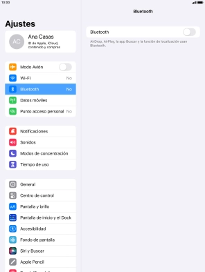Pulsa el indicador junto a "Bluetooth" para activar la función.