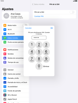 Activa o desactiva el uso del código PIN de tu tarjeta SIM en la Apple iPad (9th Generation) iPadOS 15.4