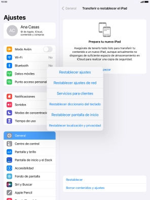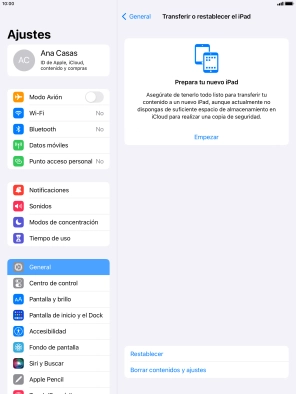 1. Busca "Transferir o restablecer el iPad"