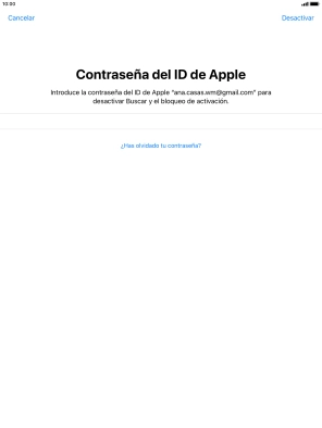 Introduce la contraseña de tu ID de Apple y pulsa Desactivar.