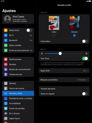 Si activas la función, pulsa Opciones y sigue las indicaciones de la pantalla para seleccionar el período de tiempo que debe durar el Modo Oscuro.