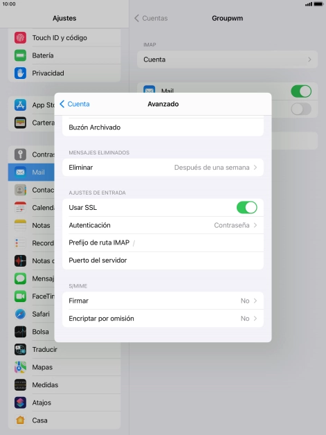 Pulsa el indicador junto a "Usar SSL" para desactivar la función.