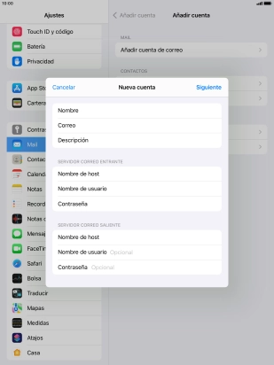 Pulsa Descripción e introduce el nombre de la cuenta de correo electrónico.