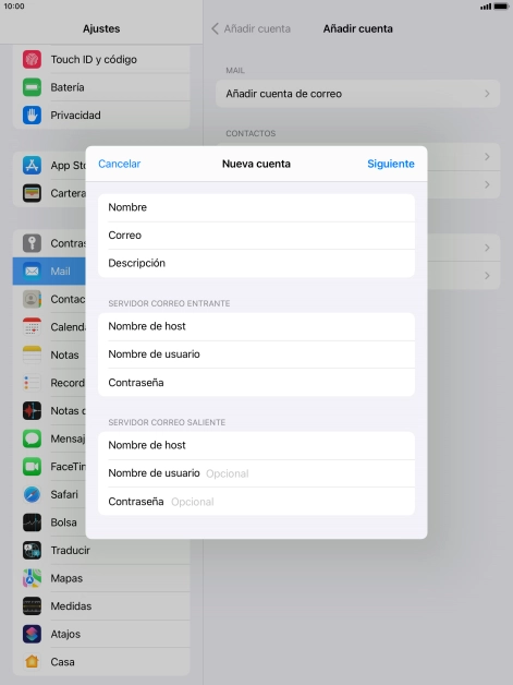 Pulsa Nombre de host e introduce el nombre del servidor de correo de entrada de tu proveedor de correo electrónico.