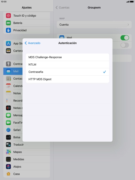 Pulsa Contraseña e introduce la contraseña de tu cuenta de correo electrónico.