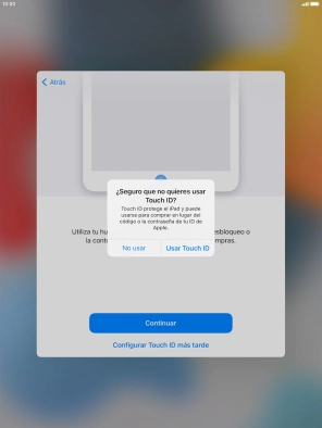 Sigue las indicaciones de la pantalla para activar el uso del sensor de identidad o pulsa Configurar Touch ID más tarde.