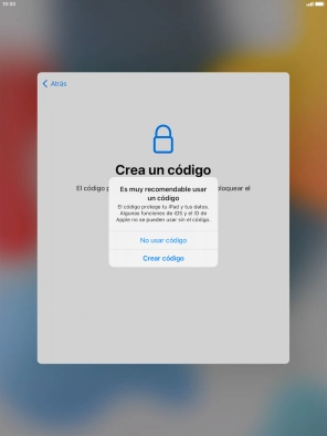 Sigue las indicaciones de la pantalla para activar el uso del código de seguridad o pulsa No usar código.