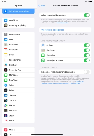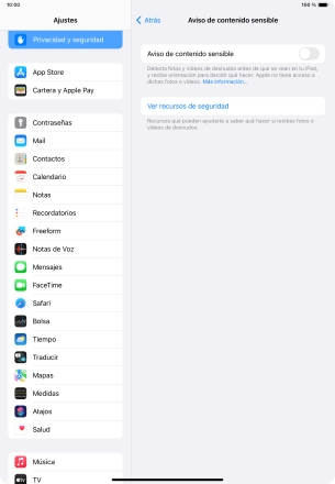 Para poder activar o desactivar el aviso de contenido sensible en las aplicaciones, debes haber activado el aviso de contenido sensible.