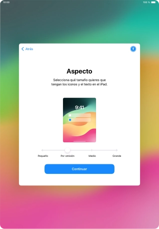 Selecciona el tamaño de letra y de los iconos que debe tener la tablet y pulsa Continuar.