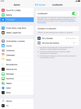 Pulsa el indicador junto a "Localización" para activar o desactivar la función.