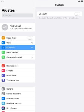 Pulsa el indicador junto a "Bluetooth" para activar la función.