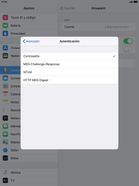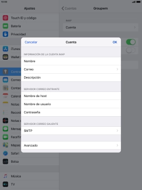 Configura la Apple iPad mini 4 iOS 12.3 para correo electrónico IMAP