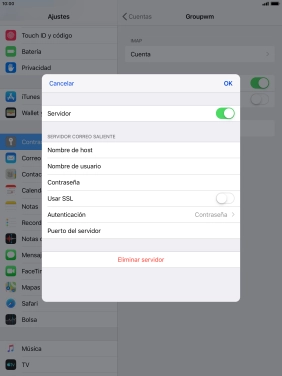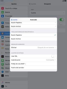 Pulsa el indicador junto a "Usar SSL" para desactivar la función.