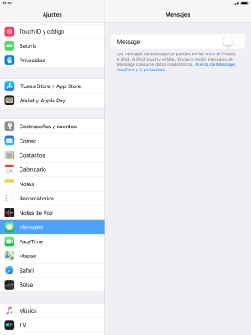 Pulsa el indicador junto a "iMessage" para activar la función.