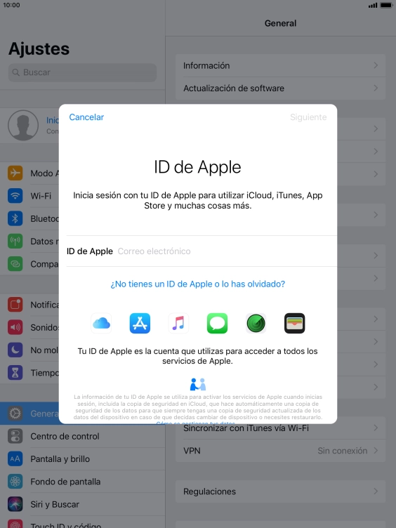 Con un ID de Apple tienes acceso a varias funciones en tu tablet, por ejemplo, iCloud, App Store y iTunes. Para poder activar un ID de Apple, necesitas disponer de conexión a Internet en tu tablet. Si no tienes, puedes configurar el APN de tu tablet para Internet.