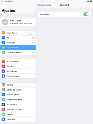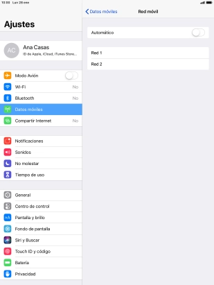 Pulsa el indicador junto a "Automático" para activar o desactivar la selección automática de red.