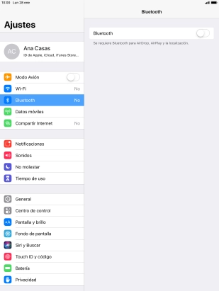 Pulsa el indicador junto a "Bluetooth" para activar la función.