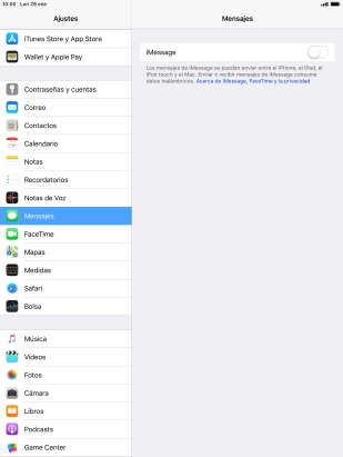 Pulsa el indicador junto a "iMessage" para activar la función.