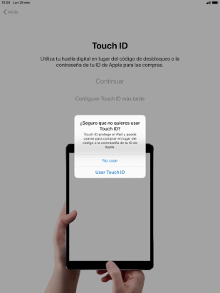 Sigue las indicaciones de la pantalla para activar el uso del sensor de identidad o pulsa Configurar Touch ID más tarde.