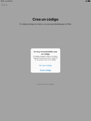 Sigue las indicaciones de la pantalla para activar el uso del código de seguridad o pulsa No usar código.