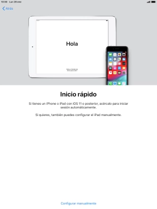 Sigue las indicaciones de la pantalla para transferir contenido de otro dispositivo iOS11 o con una versión más reciente o pulsa Configurar manualmente.