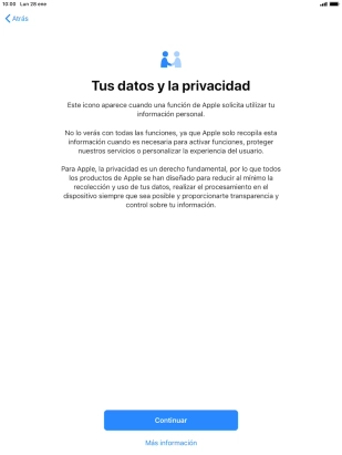 Pulsa Configurar como un nuevo iPad y sigue las indicaciones de la pantalla para finalizar la activación de la tablet.