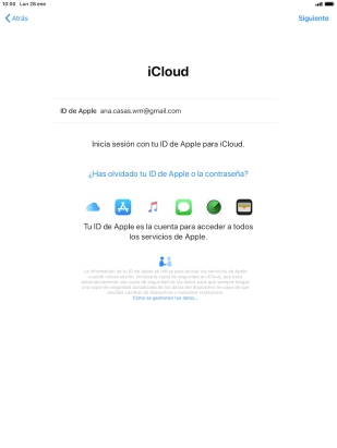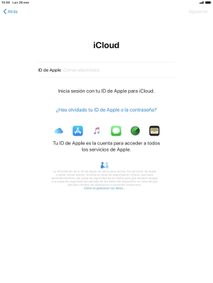 Puedes restaurar el contenido de una copia de seguridad en iCloud cuando la tablet se activa antes de utilizarla por primera vez y cuando la restableces. Cuando aparece esta imagen de pantalla, tu tablet está lista para restaurar el contenido de una copia de seguridad en iCloud.