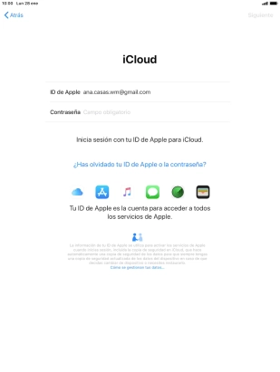 Pulsa en el campo junto a "ID de Apple" e introduce el nombre de usuario de tu ID de Apple.