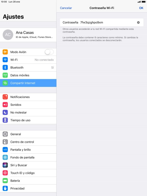 Pulsa Contraseña Wi-Fi e introduce una contraseña.