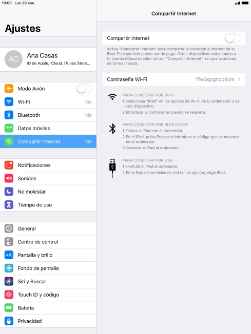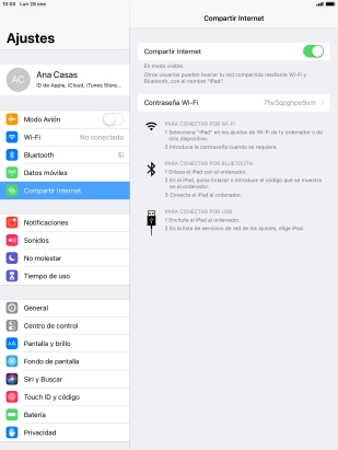 Pulsa el indicador junto a "Compartir Internet" para activar la función.