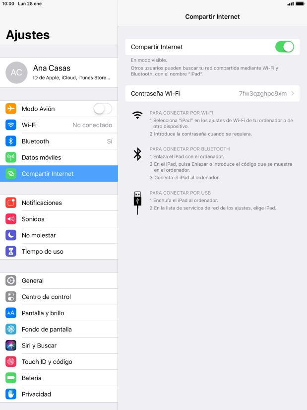 Pulsa Compartir Internet.