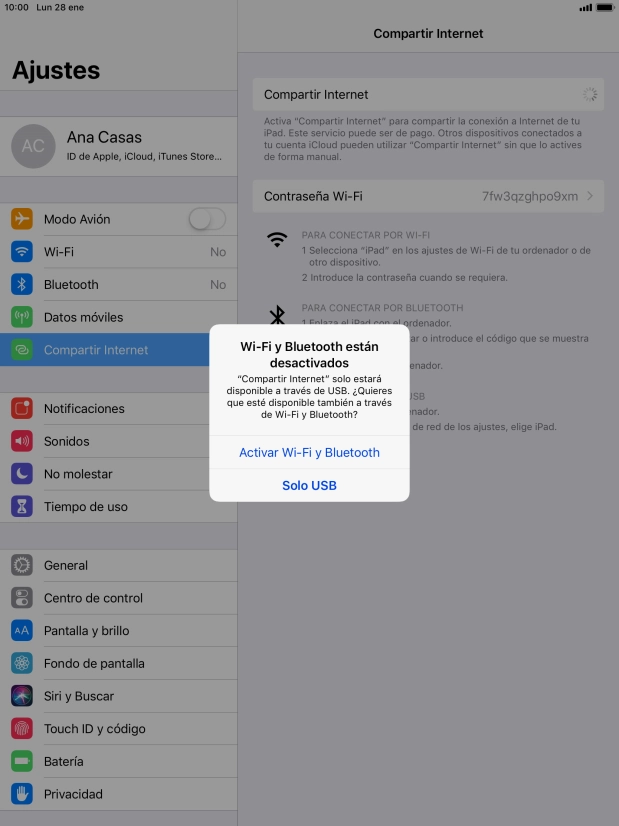 Si la función de wifi está activada, pulsa Solo Wi-Fi y USB.