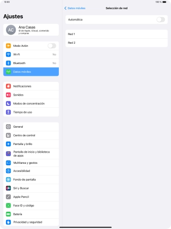 Pulsa el indicador junto a "Automática" para activar o desactivar la selección automática de red.