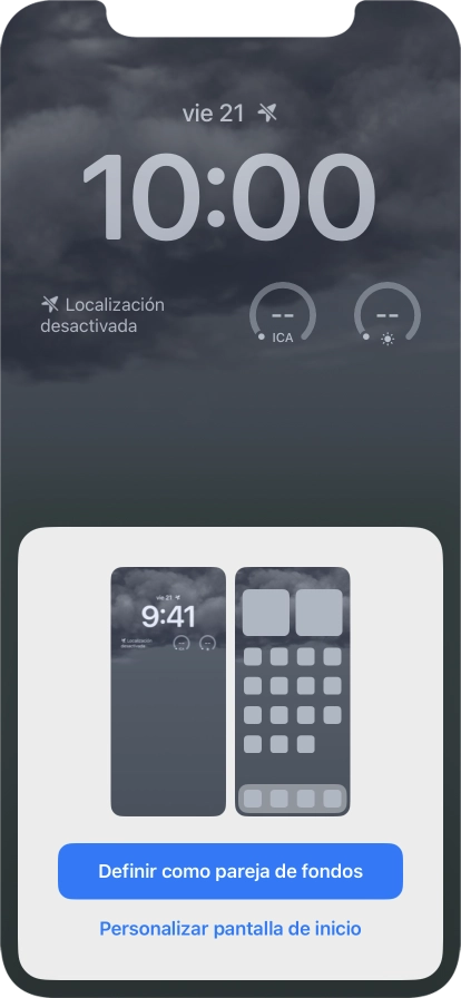 Pulsa Personalizar y sigue las indicaciones de la pantalla para personalizar la pantalla de bloqueo seleccionada.