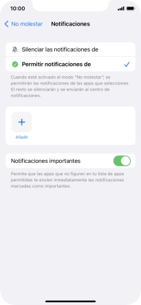Pulsa el indicador junto a "Notificaciones importantes" para mostrar u ocultar las notificaciones importantes cuando No molestar está activado.