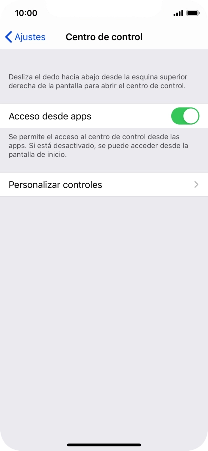 2. Activa o desactiva el Centro de control en las aplicaciones