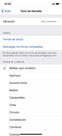 Al encontrar un timbre de llamada de tu gusto, pulsa la flecha hacia la izquierda.