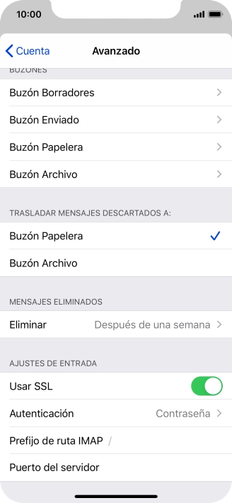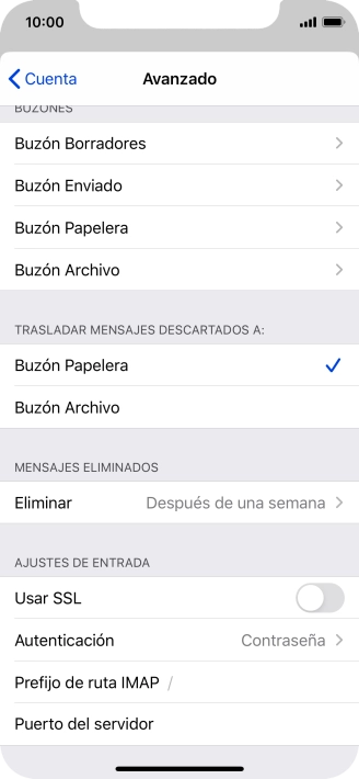 Pulsa el indicador junto a "Usar SSL" para desactivar la función.