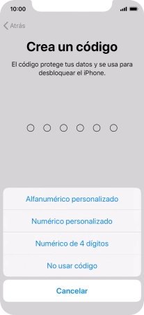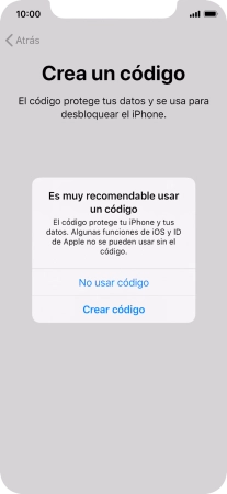 Sigue las indicaciones de la pantalla para activar el uso del código de seguridad o pulsa No usar código.