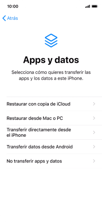 Seguir las indicaciones de la pantalla y de la app "Move to iOS" para transferir contenido de un teléfono con el sistema operativo Android al iPhone y para configurar el teléfono y dejarlo listo para su utilización.