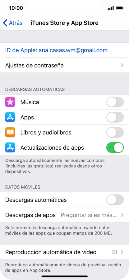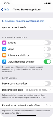 Pulsa el indicador junto a "Descargas automáticas" para activar o desactivar la función.