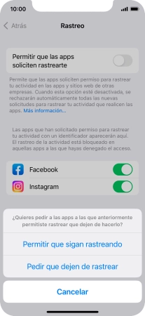 Pulsa el indicador junto a "Permitir que las apps soliciten rastrearte" para activar o desactivar la función.