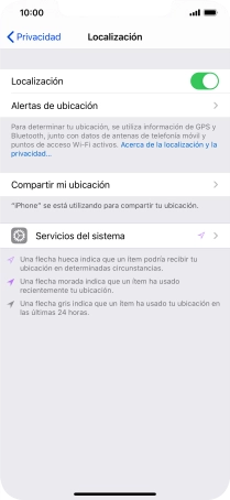 Pulsa el indicador junto a "Localización" para activar o desactivar la función.