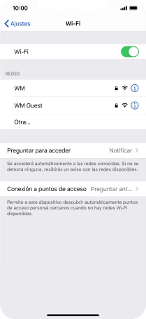 Pulsa el indicador junto a "Wi-Fi" para activar la función.